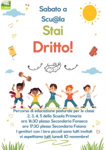 Percorso di educazione posturale destinato agli alunni della scuola primaria...Incontro informativo lunedì 10 novembre