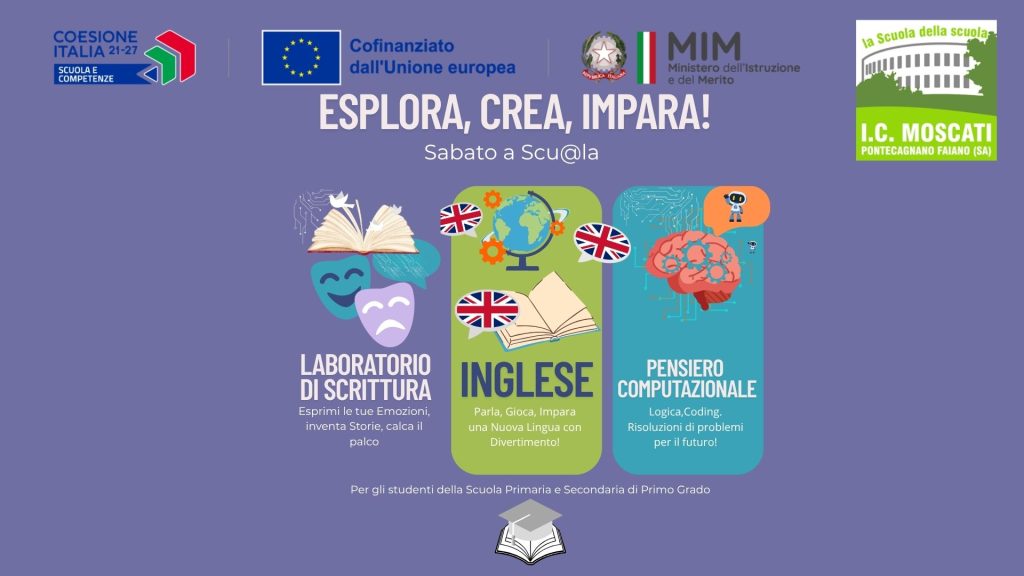 AVVIO MODULI FORMATIVI PN 21/27 ESPLORA…CREA…IMPARA …PROGETTO SABATO SCU@LA…UN’OPPORTUNITA’ UNICA DI FORMAZIONE E DI RELAZIONE!
